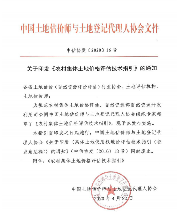 關于印發《農村集體土地價格評估技術指引》的通知