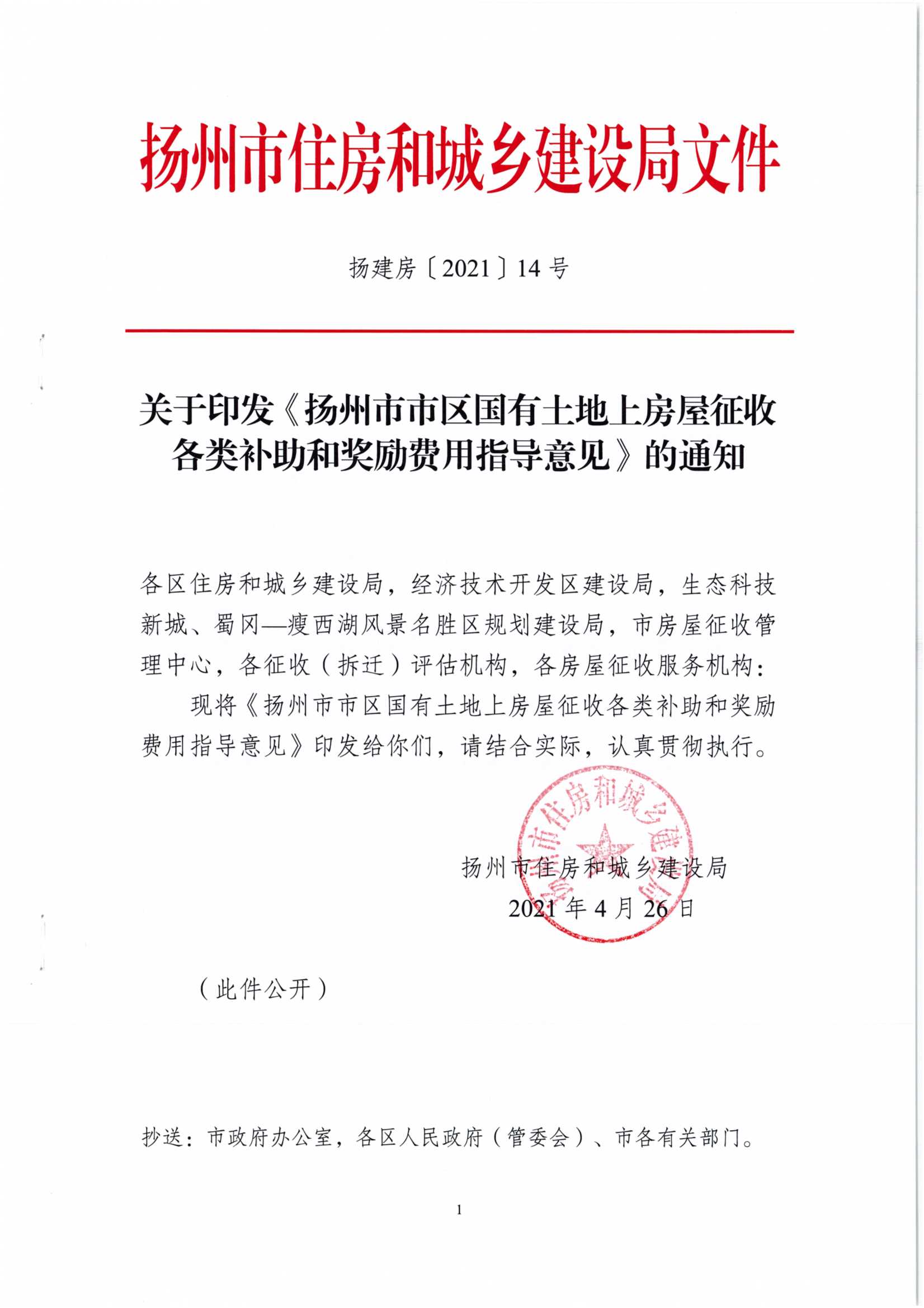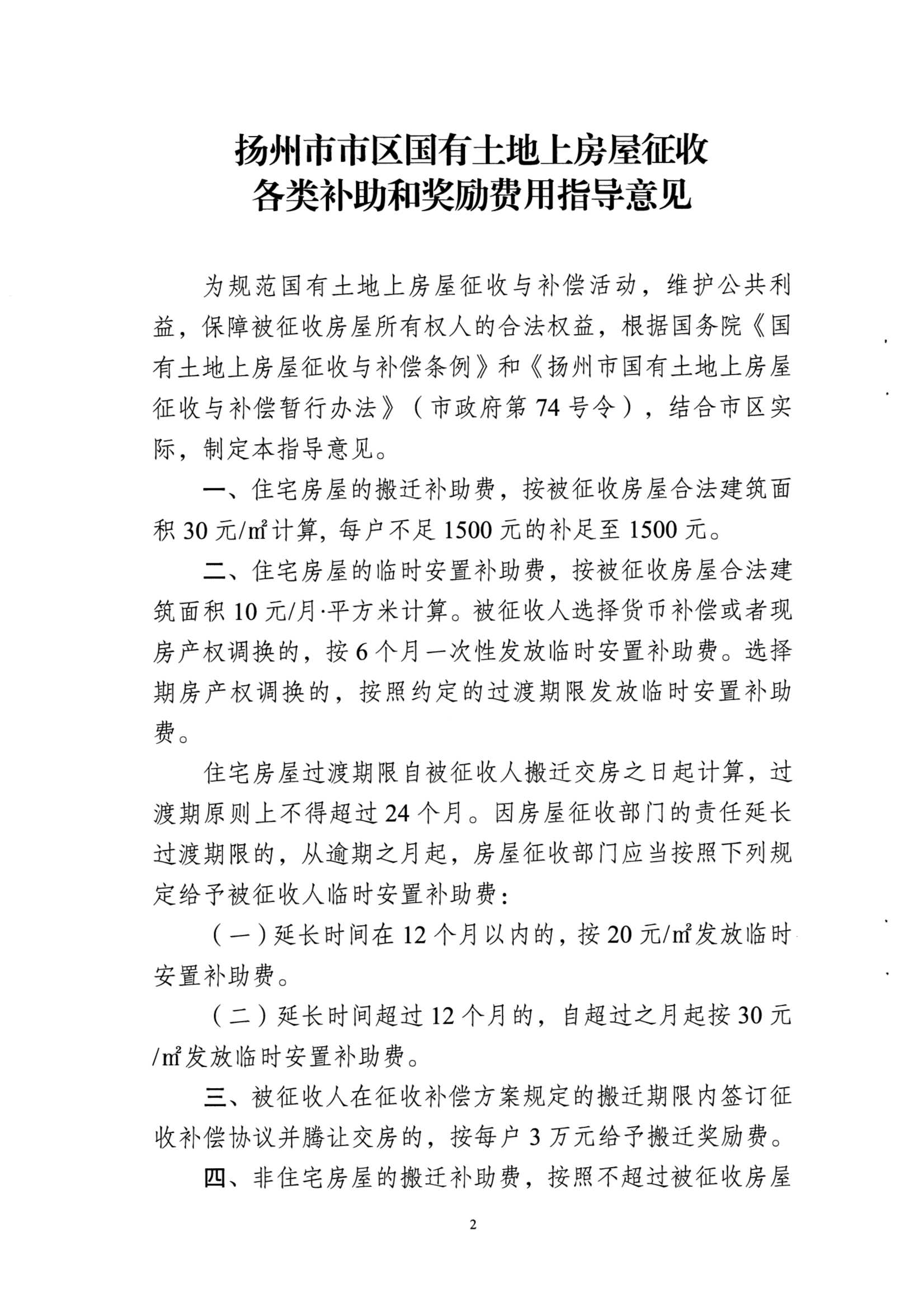 關于公布揚州市區國有土地上房屋征收各類補助和補償費用的通知