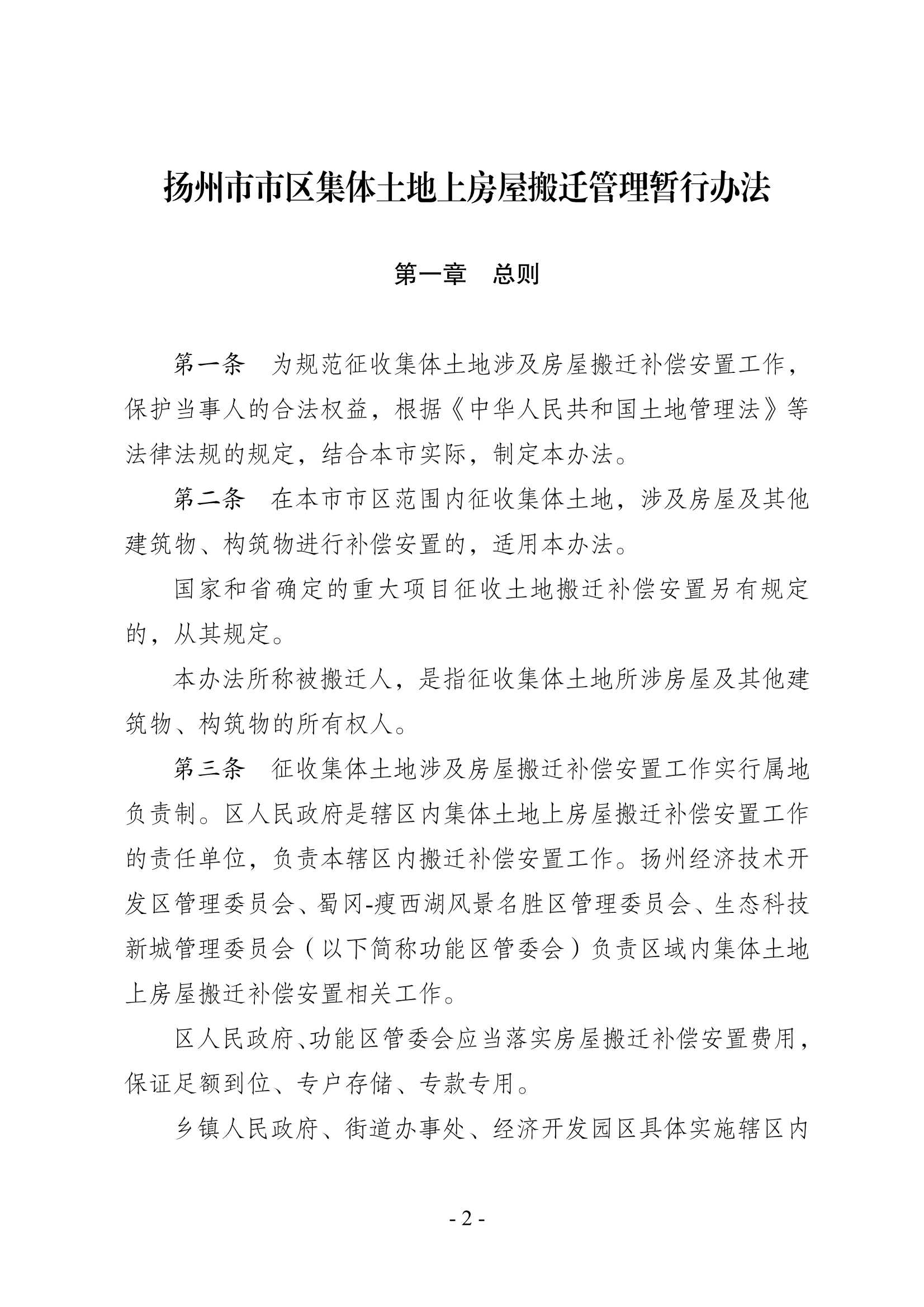 揚州市市區(qū)集體土地上房屋搬遷管理暫行辦法