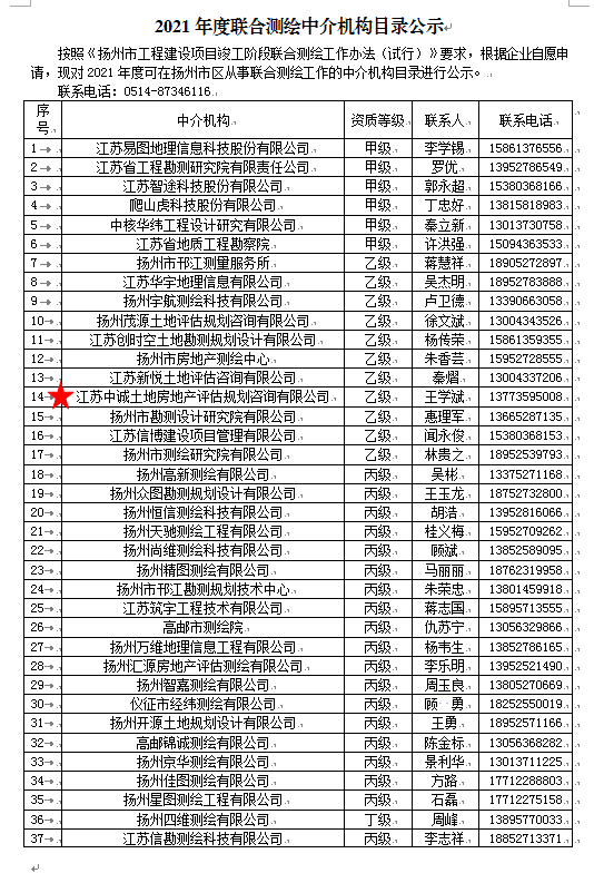 熱烈祝賀中誠評估入選揚州市2021年度聯(lián)合測繪中介機構(gòu)目錄